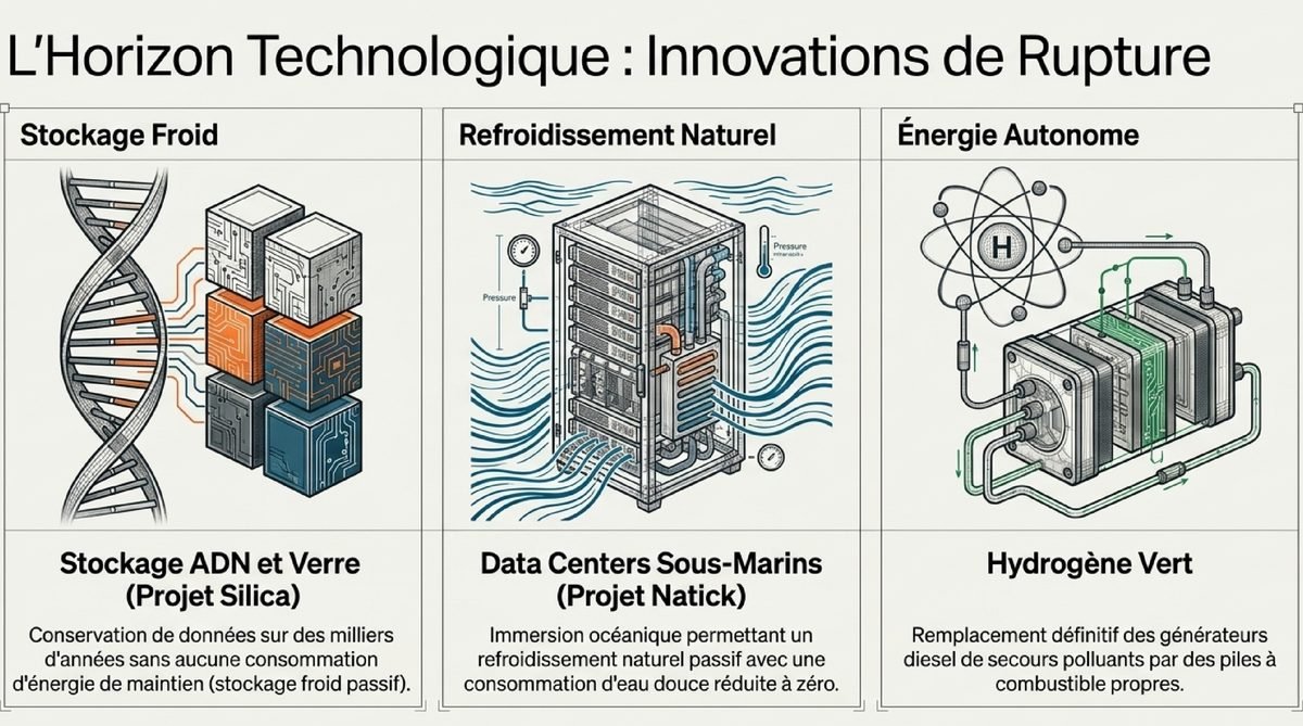 | 🌊 Data centers sous-marins | Refroidissement naturel par l'océan, zéro eau douce. | Tests concluants (ex: Projet Natick). |