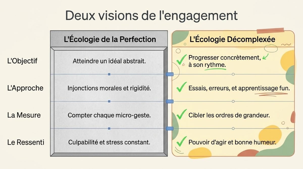 Je crois fermement que changer le monde peut aussi être amusant ! Dans cet esprit, je partagerai des astuces pratiques que j’ai testées, incluant mes succès ET mes échecs. Vous trouverez des explications claires sur des sujets parfois compliqués et une bonne dose de bonne humeur. Rejoignez-moi dans cette aventure où on espère tous faire une différence, sans culpabilité ni pression. Prêt·e à explorer ensemble ? 🚀