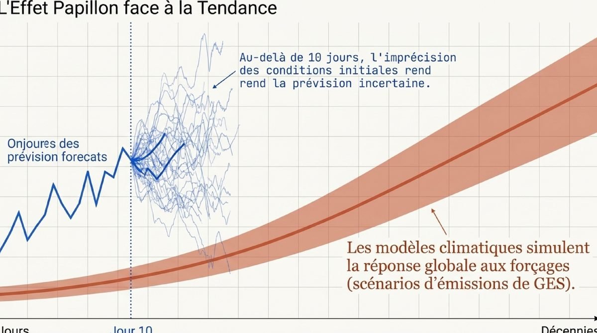 - 🧠 Le vrai enjeu : Il ne s’agit pas de prévoir le temps dans un siècle, mais de comprendre les conséquences à long terme de nos actions actuelles.