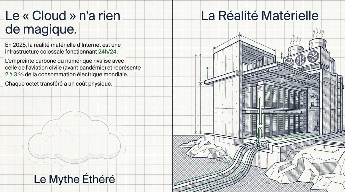 - ⚡ Consommation invisible : Les data centers représentent une part croissante de la consommation électrique mondiale (environ 2 à 3 %).