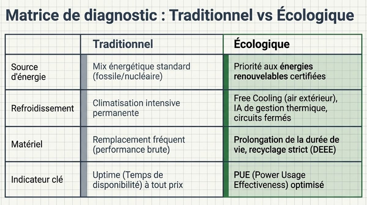 | Matériel | Remplacement fréquent pour la performance brute | Prolongation de la durée de vie, recyclage optimisé (DEEE) |