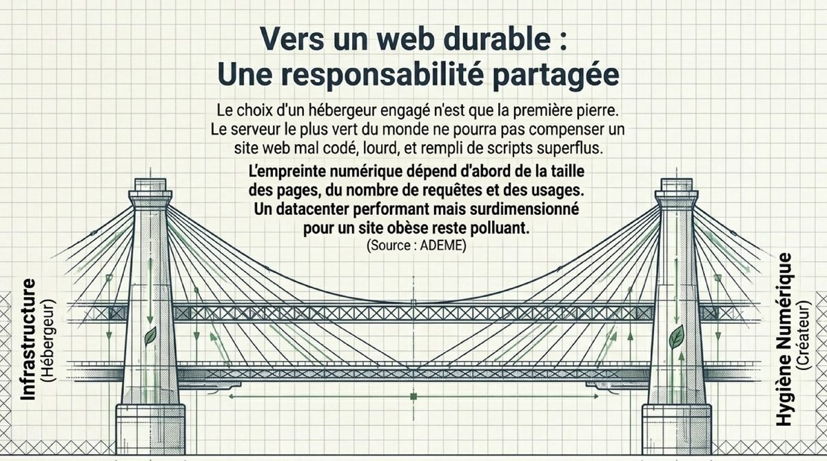 Pour aller plus loin : Le choix d’un hébergement web durable pèse sur l’empreinte globale, hébergement web durable en détaille les critères.