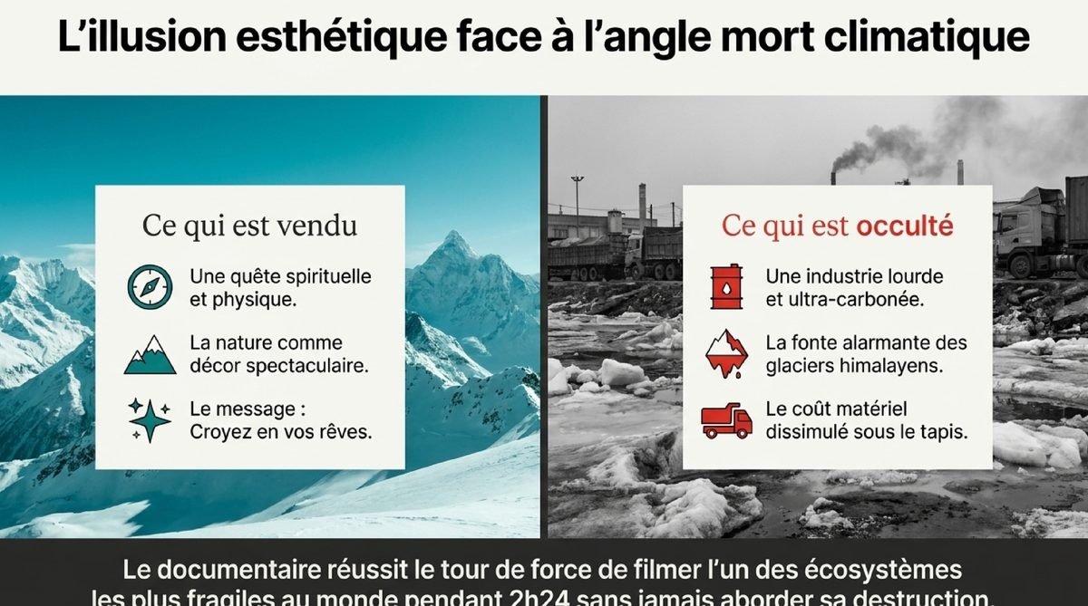 - 🤫 Le grand silence : Le documentaire élude presque totalement les questions climatiques cruciales comme la fonte des glaciers.
