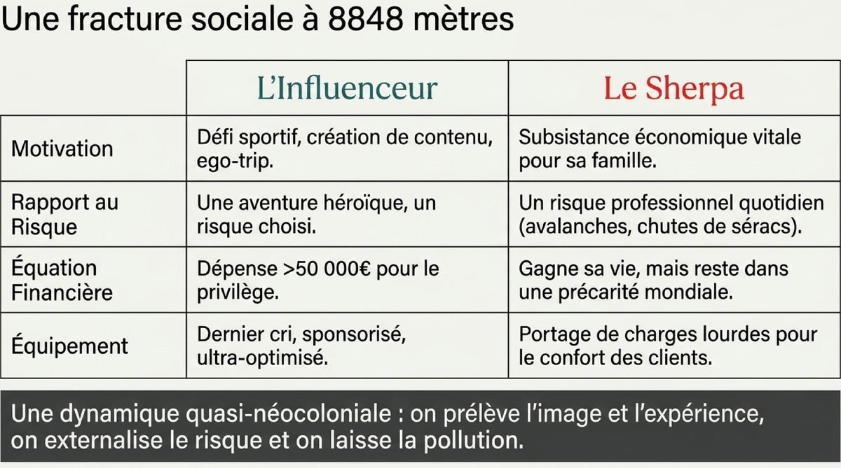 | Aspect | L’influenceur / Touriste 🧗♂️ | Le Sherpa 🏔️ |