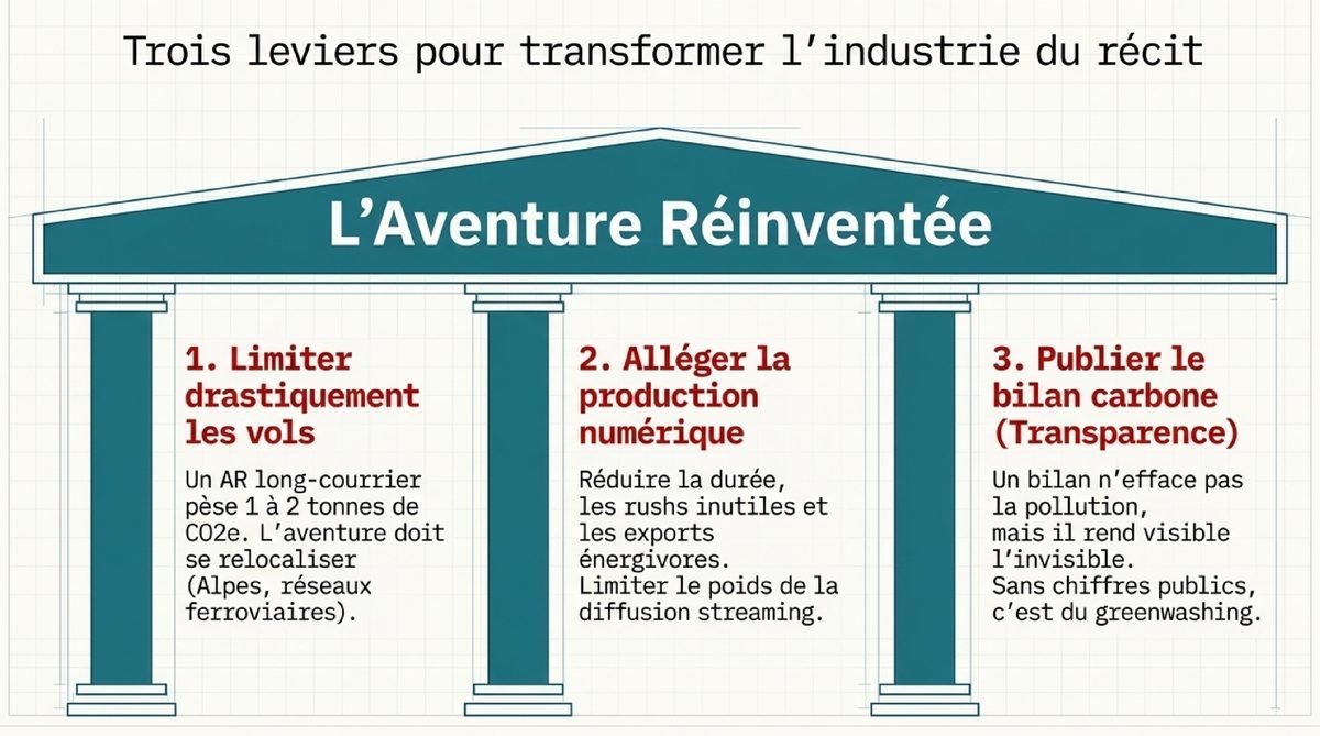 Le levier individuel existe, mais il reste limité face aux choix de production, de diffusion et de sponsoring. En réalité, l’essentiel se joue côté organisateurs, plateformes et financeurs : taille des équipes, fréquence des déplacements, volume de contenus, hébergement des rushs, et surtout absence ou présence d’un bilan carbone public. Pour cadrer ces ordres de grandeur, une base utile reste le guide de l’ADEME sur les émissions du numérique et des transports : ademe.fr. Sans chiffres, l’aventure reste un récit ; avec eux, elle devient comparable.