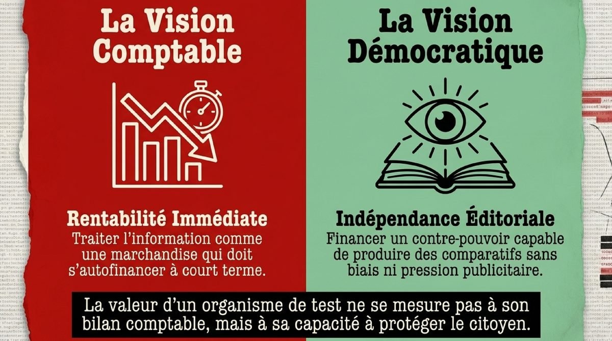 La nuance d’Alice — Le sujet n’est pas seulement budgétaire : la valeur d’un organisme de test se mesure à sa capacité à produire des comparatifs indépendants, pas à sa rentabilité immédiate. Quand l’information est financée par la publicité ou par des actionnaires industriels, le risque de biais augmente mécaniquement ; c’est précisément ce que l’indépendance éditoriale limite.