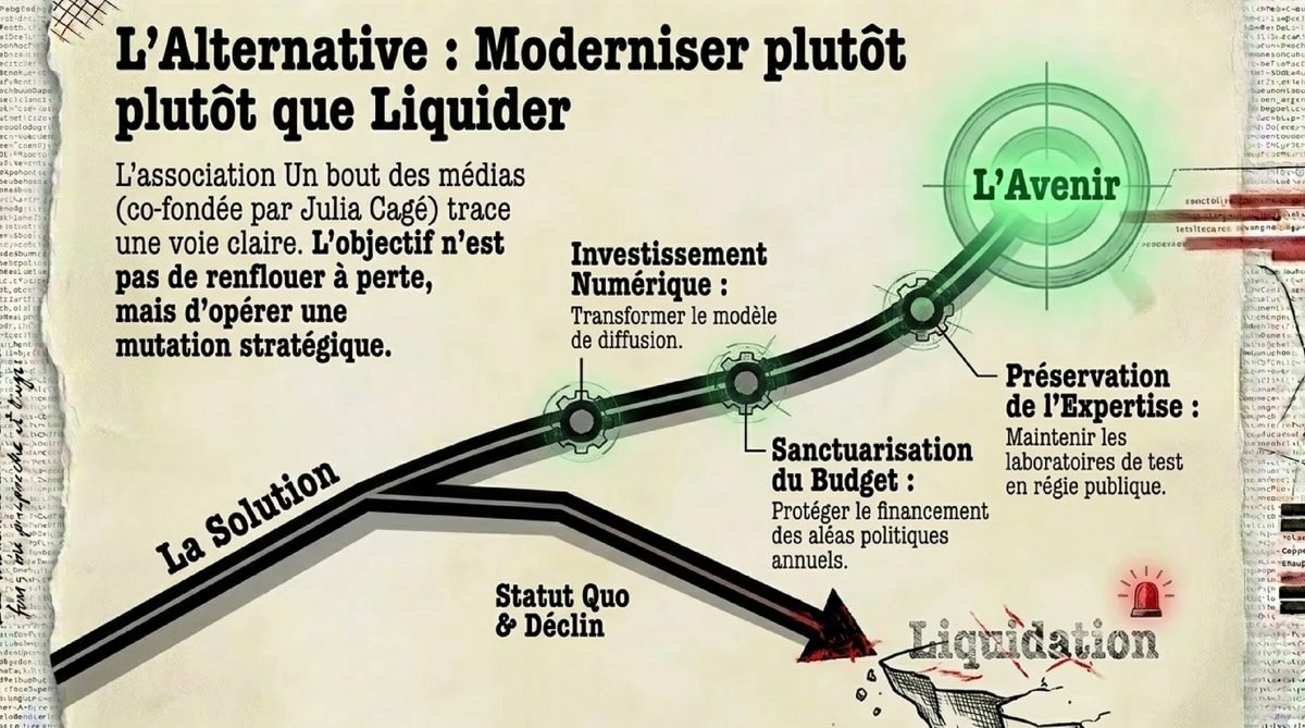 Mais pour Julia Cagé, cet argument ne tient pas la route une seconde. Elle pointe du doigt une hypocrisie flagrante : on reproche à l’organisme de perdre de l’argent alors que l’État s’est progressivement désengagé ces dernières années, coupant les vivres petit à petit. C’est un peu comme si on arrêtait d’arroser une plante pour ensuite s’étonner qu’elle fane. La suppression de ce média public n’est pas une fatalité économique, c’est un choix politique de ne pas réinvestir, contrairement à ce qui a été fait pour moderniser d’autres services publics.